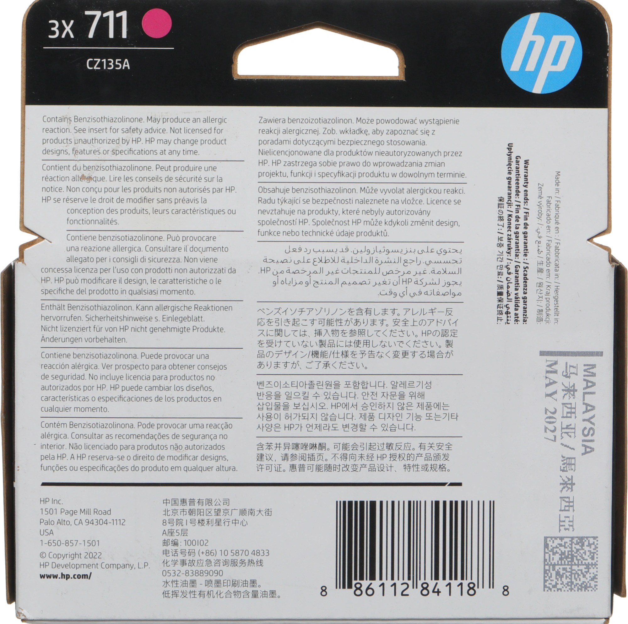 Картридж струйный HP 711 CZ135A пурпурный x3упак. для HP DJ T120/T520