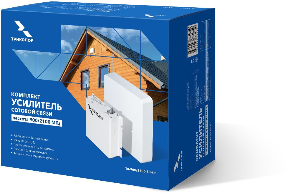 | Особенности | Комплект TR-900/2100-50-kit предназначен для улучшения качества 2G- и 3G-сигнала сотовой связи на частотах 900 и 2100 МГц. Комплектация: внешняя антенна; усилитель сигнала; внутренняя антенна; кабельные сборки длиной 10 метров — 2 шт; адаптер питания; комплект крепления. |