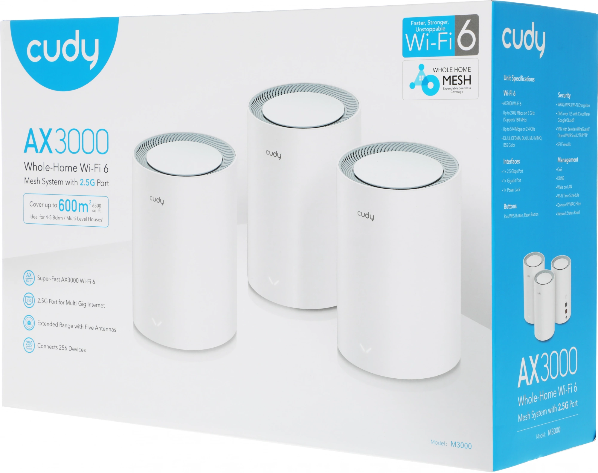 Бесшовный Mesh роутер Cudy M3000 (M3000(3-PACK) WHITE) AX3000 100/1000/2500BASE-T белый (упак.:3шт)