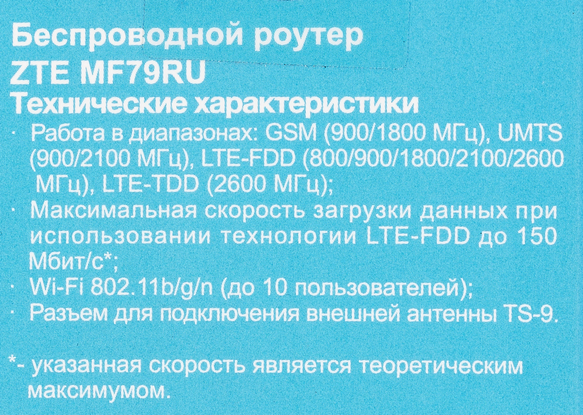 | Особенности | Диапазоны LTE FDD 3/7/20 LTE TDD Band 38. Можно зафиксировать конкретный диапазон. |