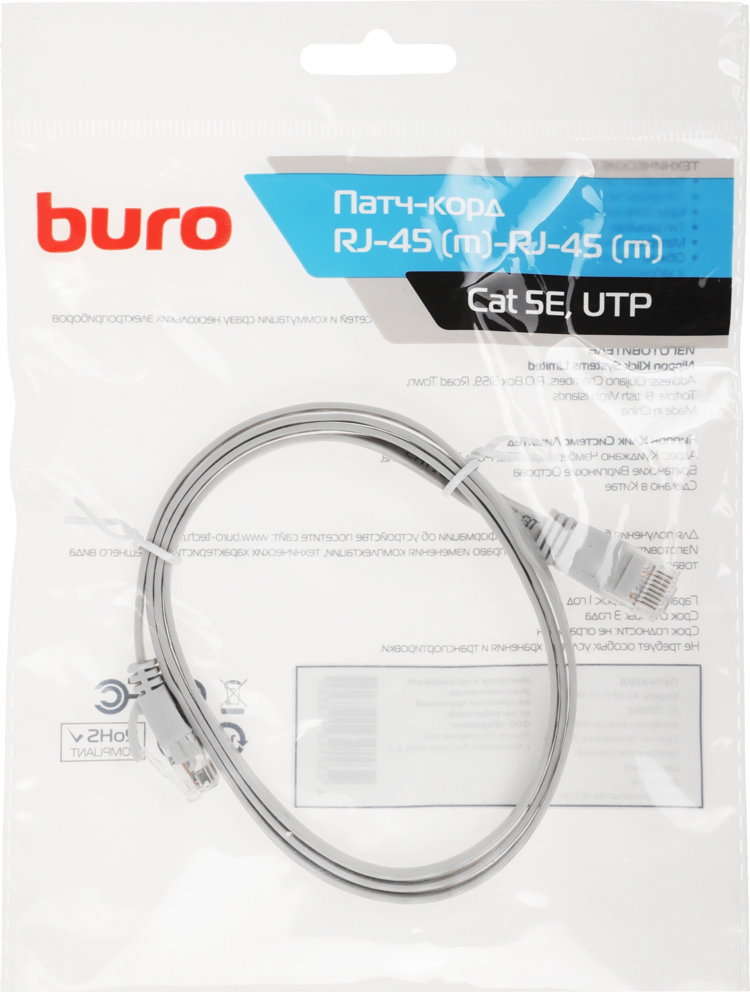 Патч-корд Buro BU-5E-FLAT-1M-G cat.5E molded 1м серый RJ-45 (m)-RJ-45 (m)