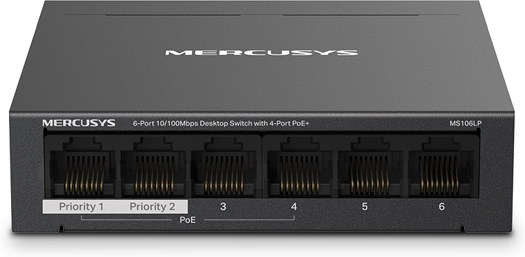 Коммутатор Mercusys MS106LP 6x100Mb 4PoE+ 40W неуправляемый