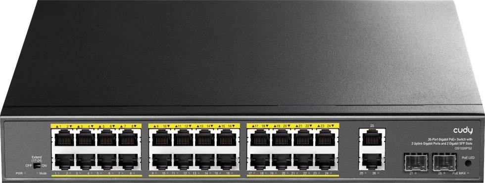 Коммутатор Cudy GS1026PS2 (L2) 26x1Гбит/с 2xКомбо(1000BASE-T/SFP) 2SFP 24PoE 300W неуправляемый