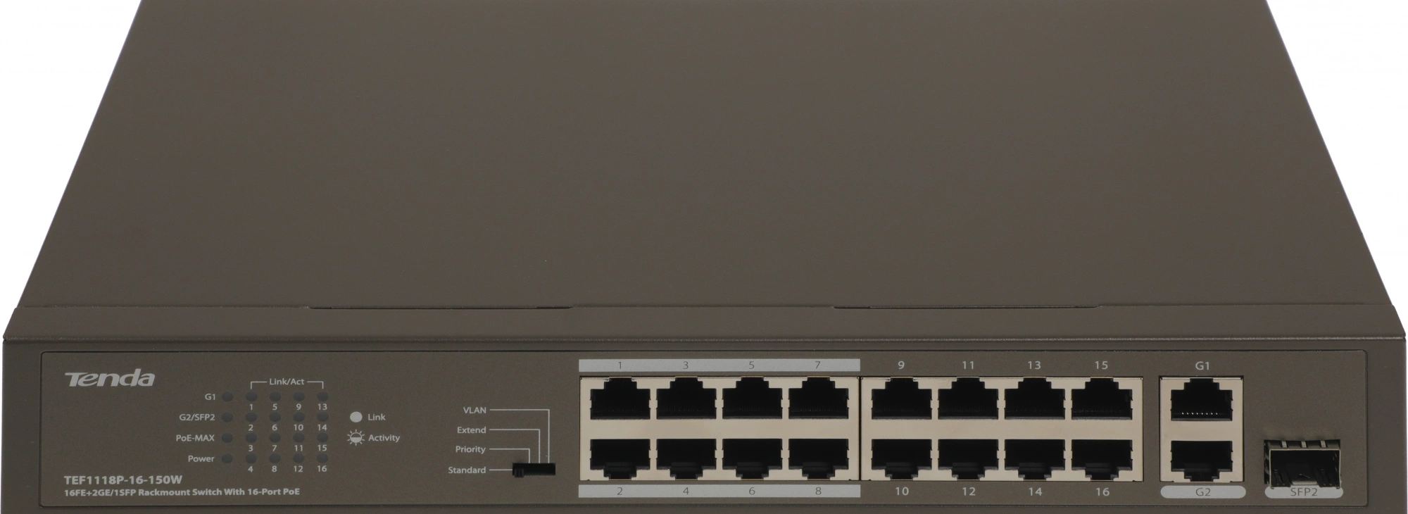 Коммутатор Tenda TEF1118P-16-150W (L2) 16x100Мбит/с 2x1Гбит/с 1SFP 16PoE 130W неуправляемый