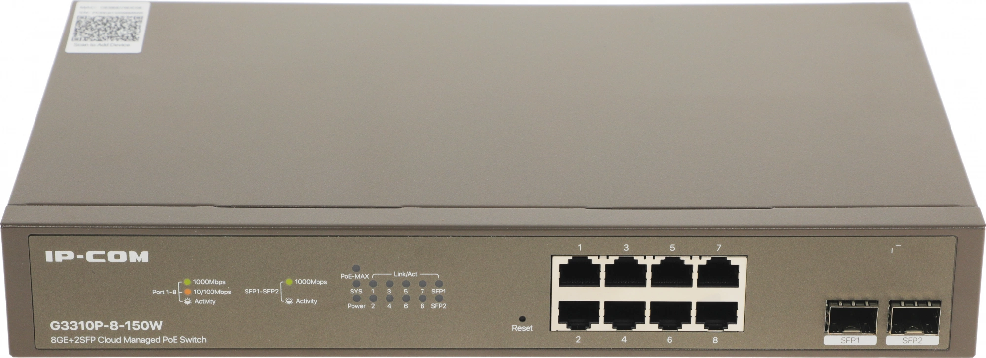 Коммутатор IP-Com G3310P-8-150W (L2) 8x1Гбит/с 2xКомбо(1000BASE-T/SFP) 2SFP 8PoE 130W управляемый
