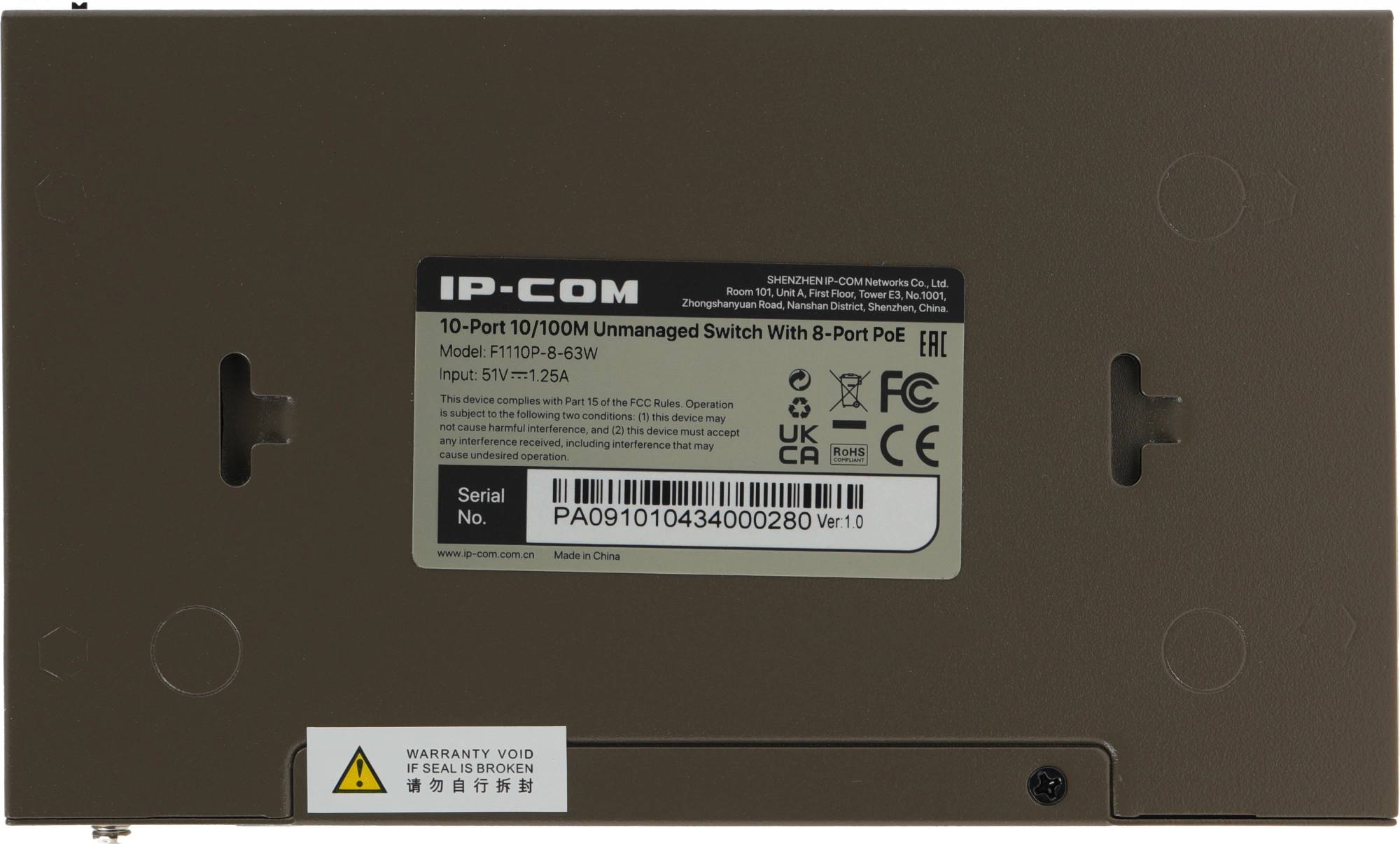 Коммутатор IP-Com F1110P-8-63W (L2) 10x100Мбит/с 8PoE 58W неуправляемый