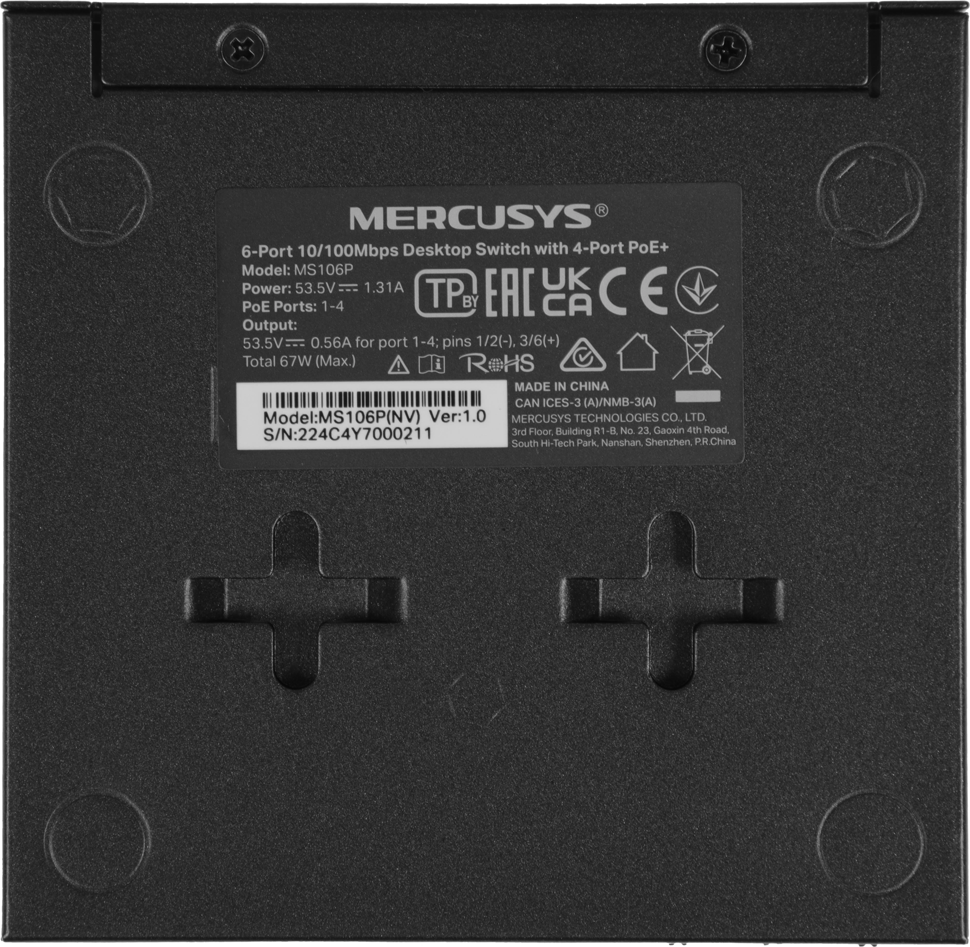 | Ссылка на сайт вендора | https://www.mercusys.com/ru/product/details/ms106p/#overview |