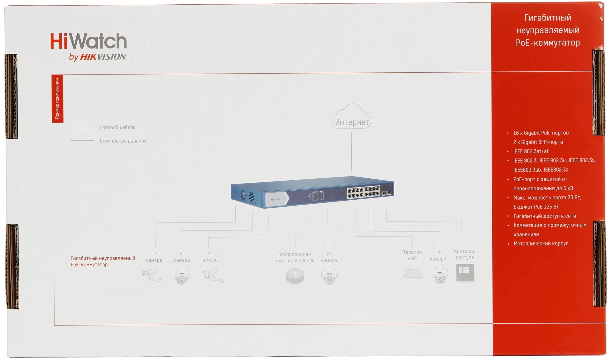 | Комплектация | Коммутатор, документация, кабель питания, комплект для монтажа. |