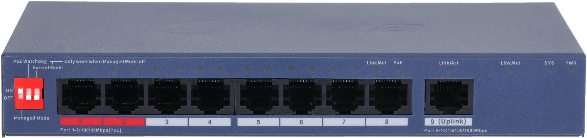Коммутатор Dahua DH-CS4009-8ET1GT-110 (L2) 8x100Мбит/с 1x1Гбит/с 8PoE 110W управляемый