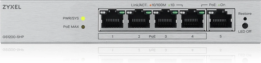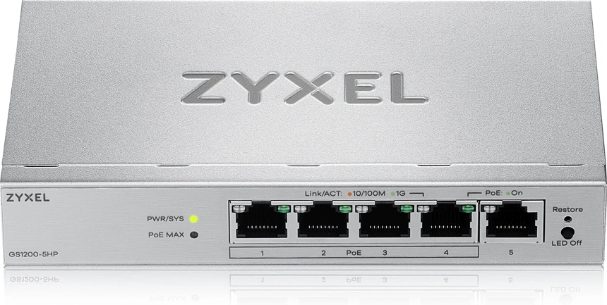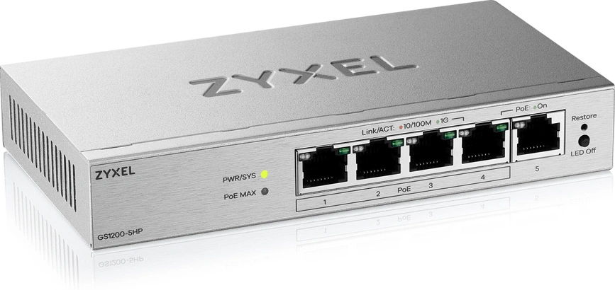 Коммутатор Zyxel GS1200-5HPV3-EU0101F (L2) 5x1Гбит/с 4PoE+ 68W управляемый