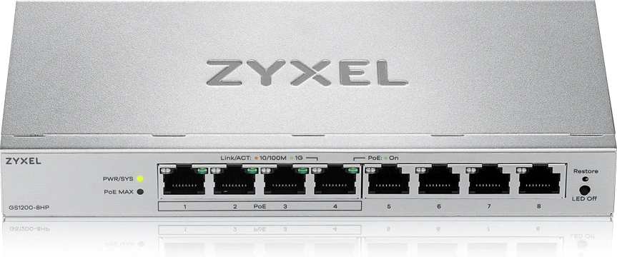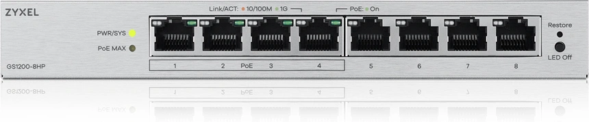 Коммутатор Zyxel GS1200-8HPV3-EU0101F (L2) 8x1Гбит/с 4PoE+ 68W управляемый