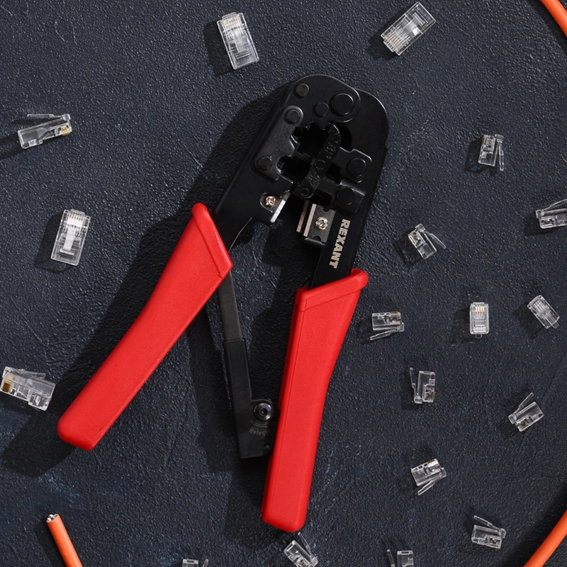 Инструмент обжимной Rexant HT-568R 12-3432 для RJ-45/RJ-12/RJ-11 (упак:1шт) красный