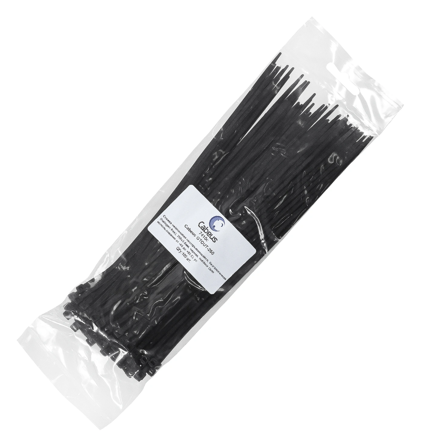 Стяжка пластиковая Cabeus GTOUT-250 250x3.6мм (упак:100шт) нейлон внешний (-40/+85) черный