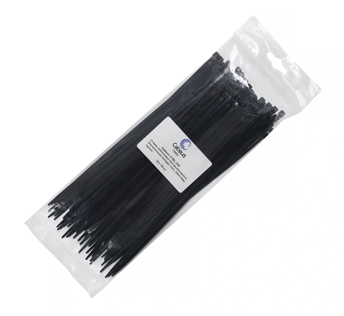 Стяжка пластиковая Cabeus CTBL-250 250x3.6мм (упак:100шт) нейлон внешний (-40/+85) черный