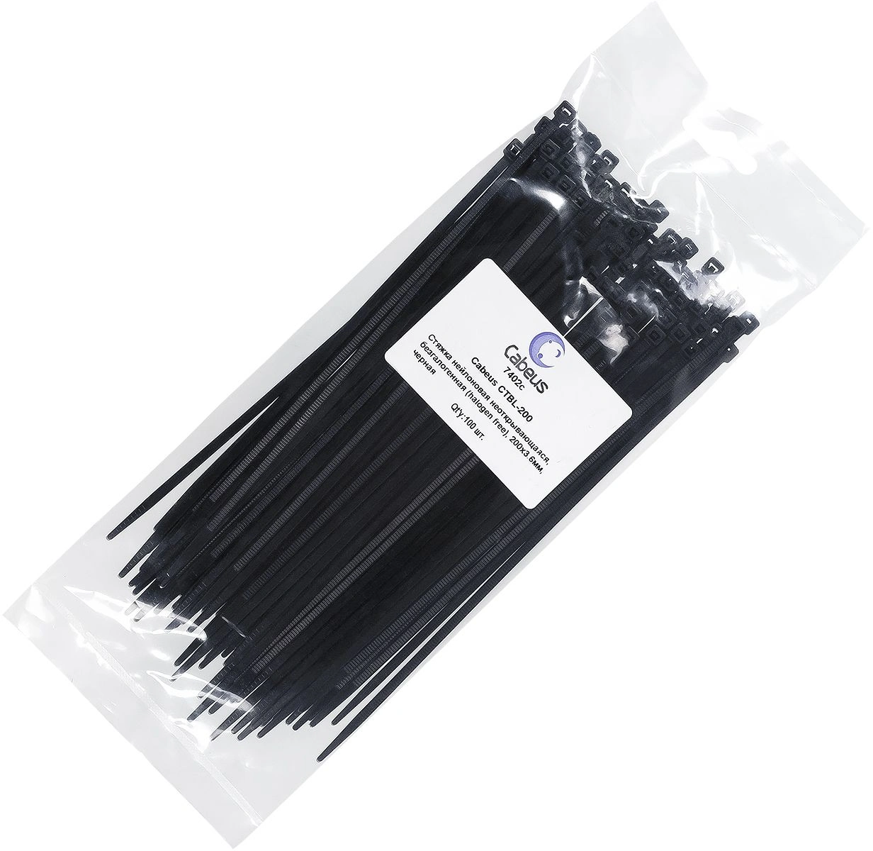 Стяжка пластиковая Cabeus CTBL-200 200x3.6мм (упак:100шт) нейлон внешний (-40/+85) черный