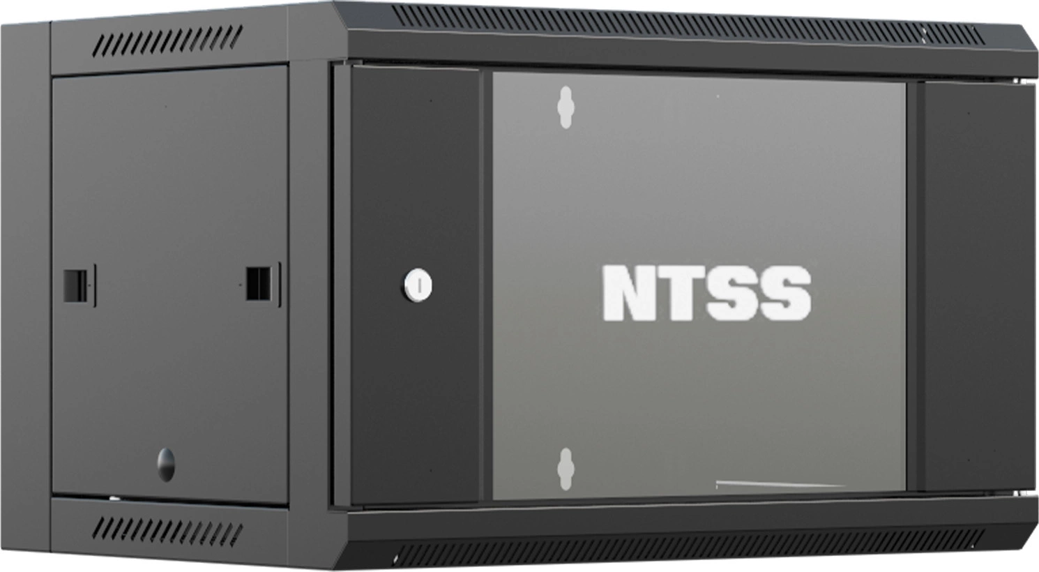 Шкаф коммутационный NTSS (NTSS-W12U6045GS-BL) настенный 12U 570x450мм пер.дв.стекл 60кг черный 24кг
