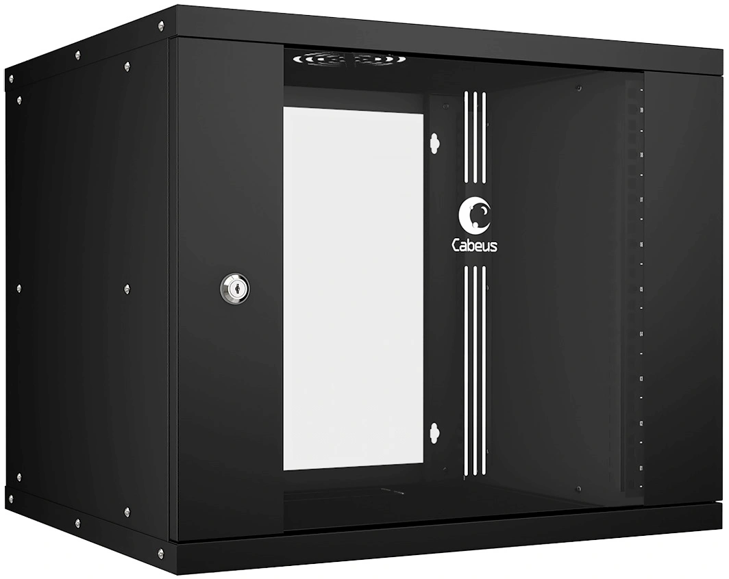 Шкаф коммутационный Cabeus (WSC-05D-9U55/45-BK) настенный 9U 550x450мм пер.дв.стекл 30кг черный 340мм 14кг 220град. 450мм IP20 сталь