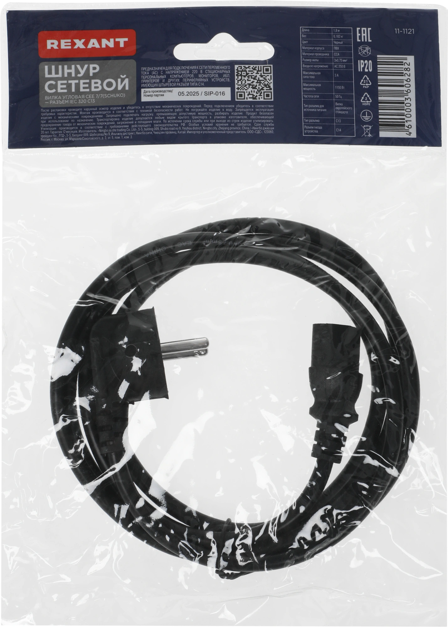 | Тип | Шнур питания |