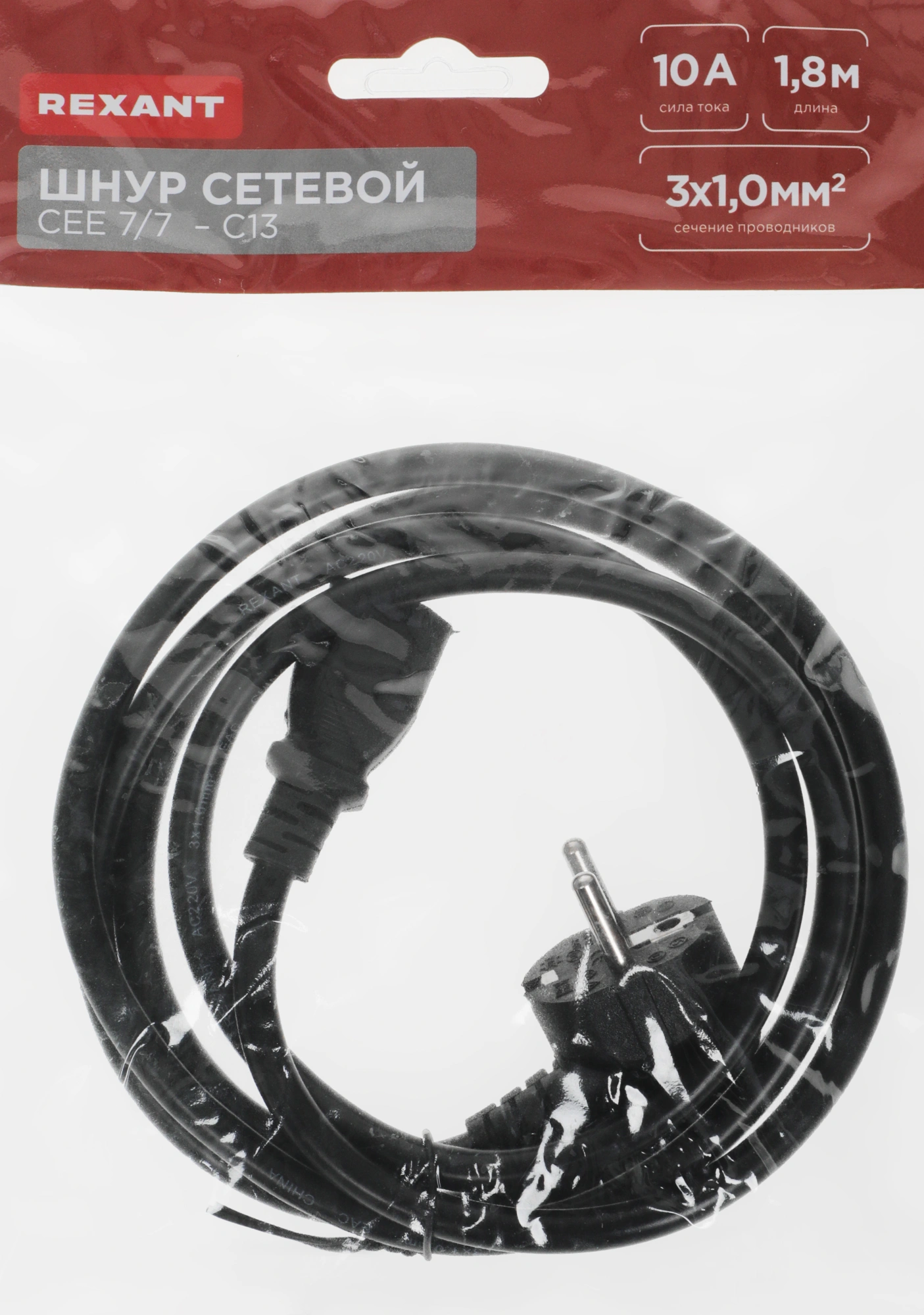 Шнур питания Rexant 04-2738 Schuko-C13 проводник.:3x1мм2 1.8м 220В черный