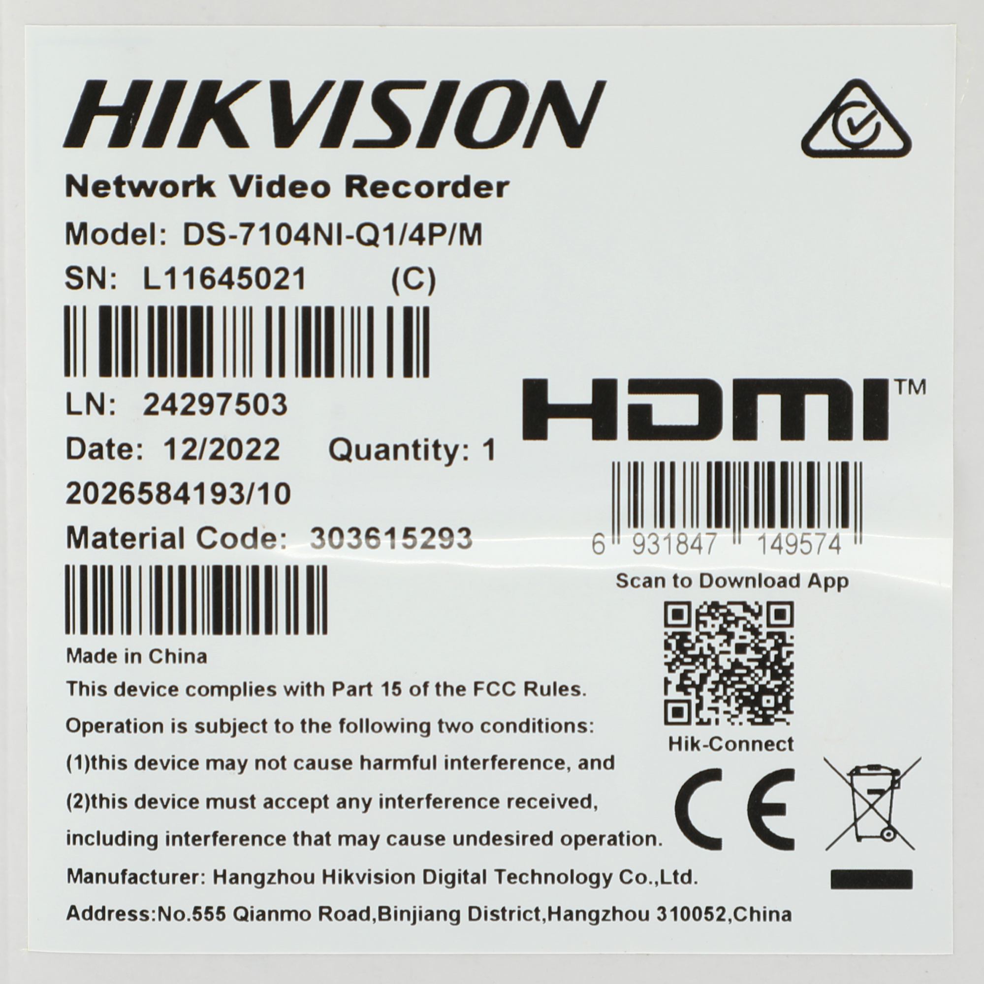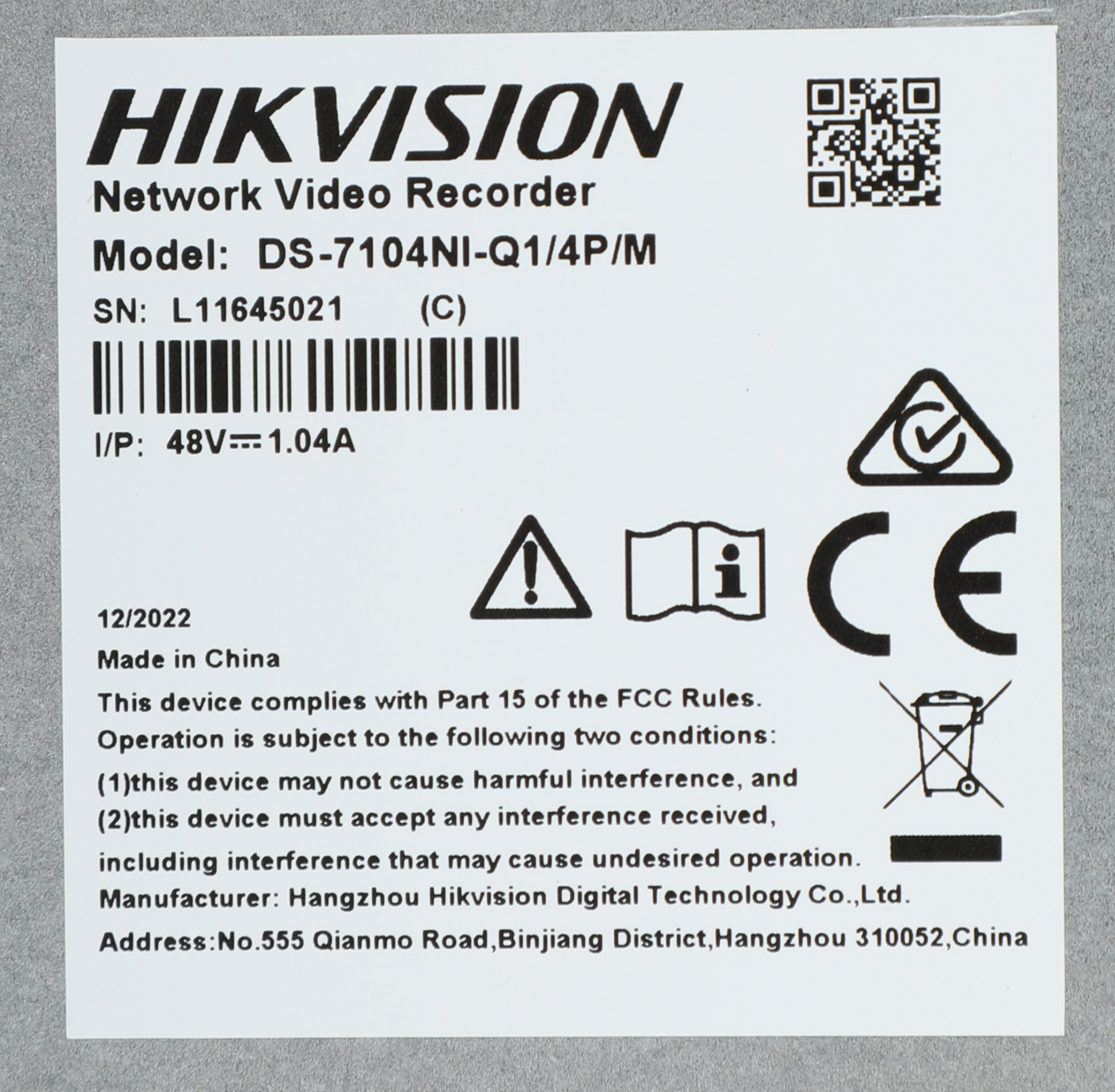 | PartNumber/Артикул Производителя | DS-7104NI-Q1/4P/M(D) |