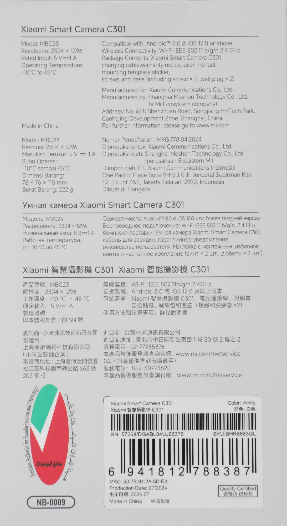 | Разрешение видео | 2304x1296 |
