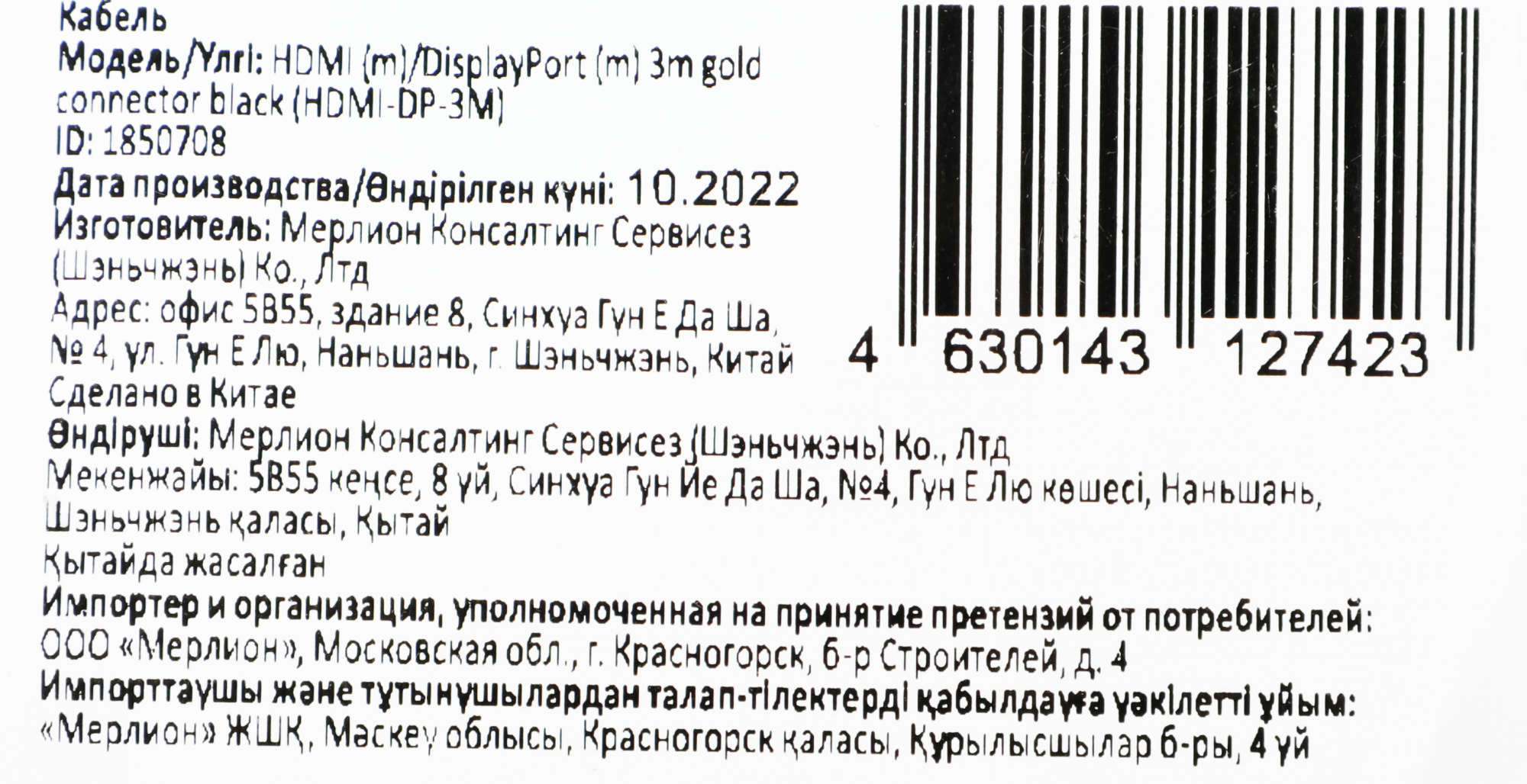 | PartNumber/Артикул Производителя | HDMI-DP-3M |
