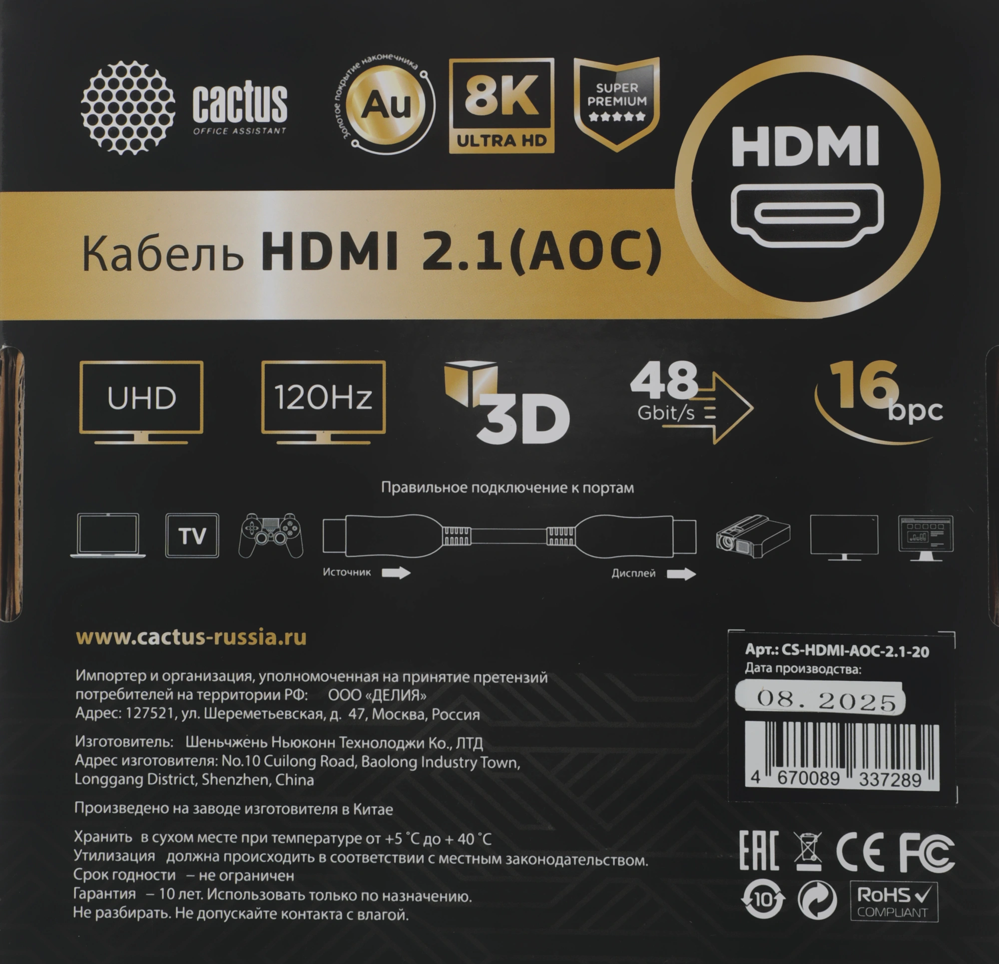 | PartNumber/Артикул Производителя | CS-HDMI-AOC-2.1-20 |