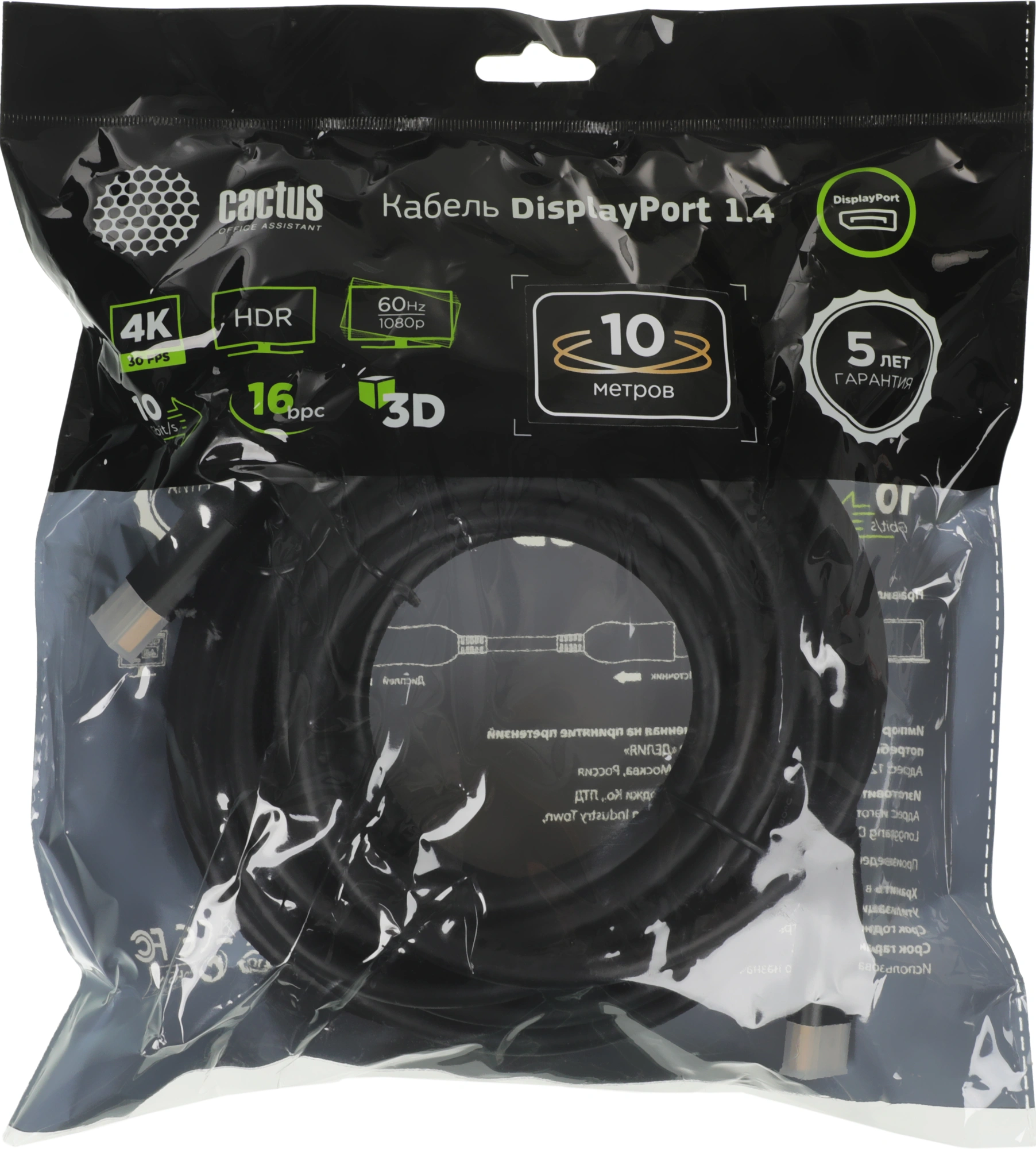 Кабель аудио-видео Cactus CS-DP-DP-1.4-10 DisplayPort (m)/DisplayPort (m) 10м. позолоч.конт. черный