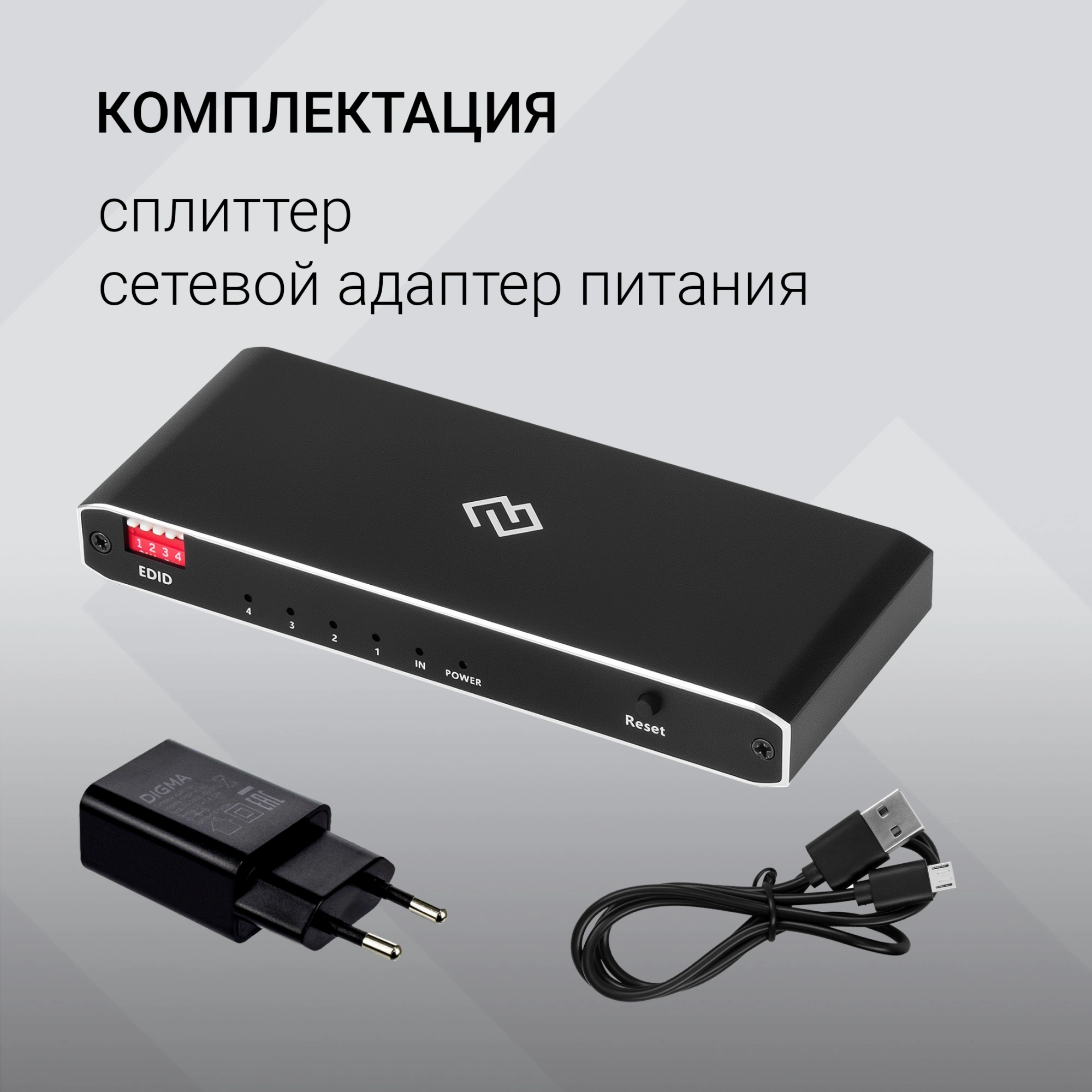 Сплиттер аудио-видео Digma DHSP-v2x4 HDMI (f)/4xHDMI (f) черный