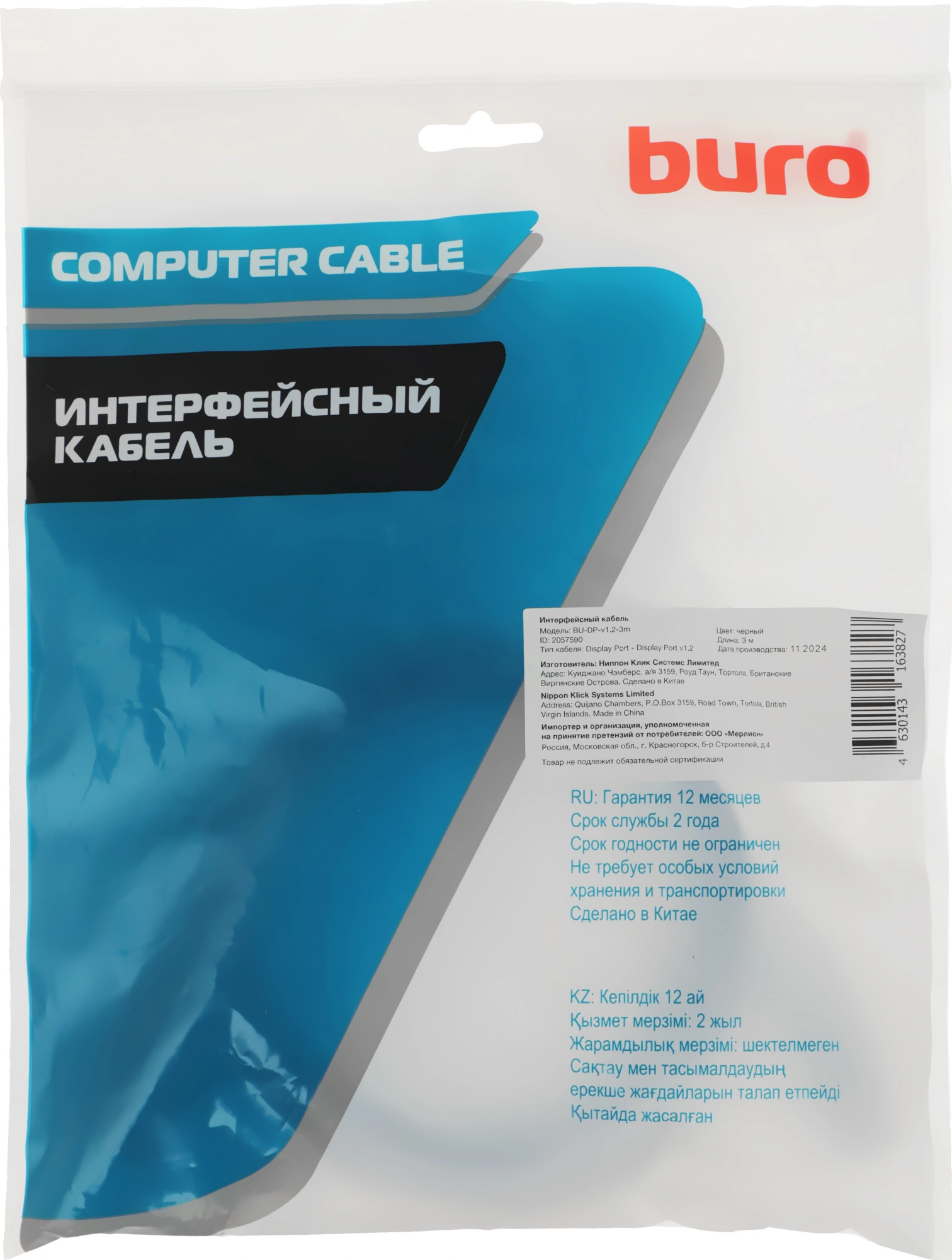 Кабель аудио-видео Buro BU-DP-v1.2-3m DisplayPort (m)/DisplayPort (m) 3м. черный