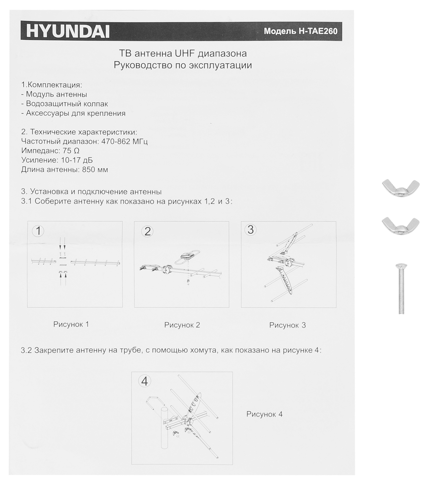 Антенна телевизионная Hyundai H-TAE260 17дБ пассивная серебристый