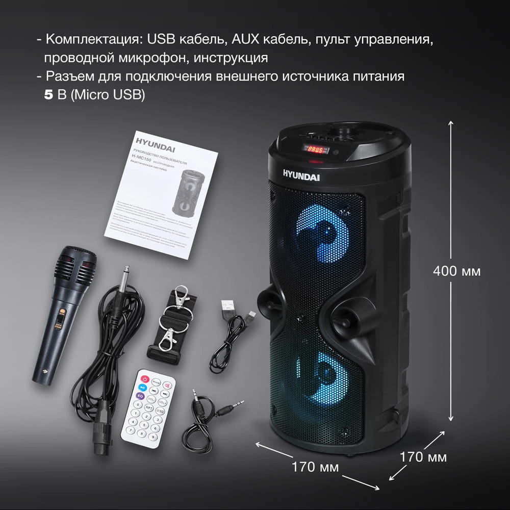 | Разъемы и интерфейсы | AUX, микрофонный вход |