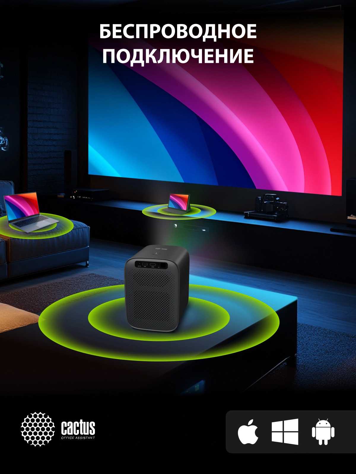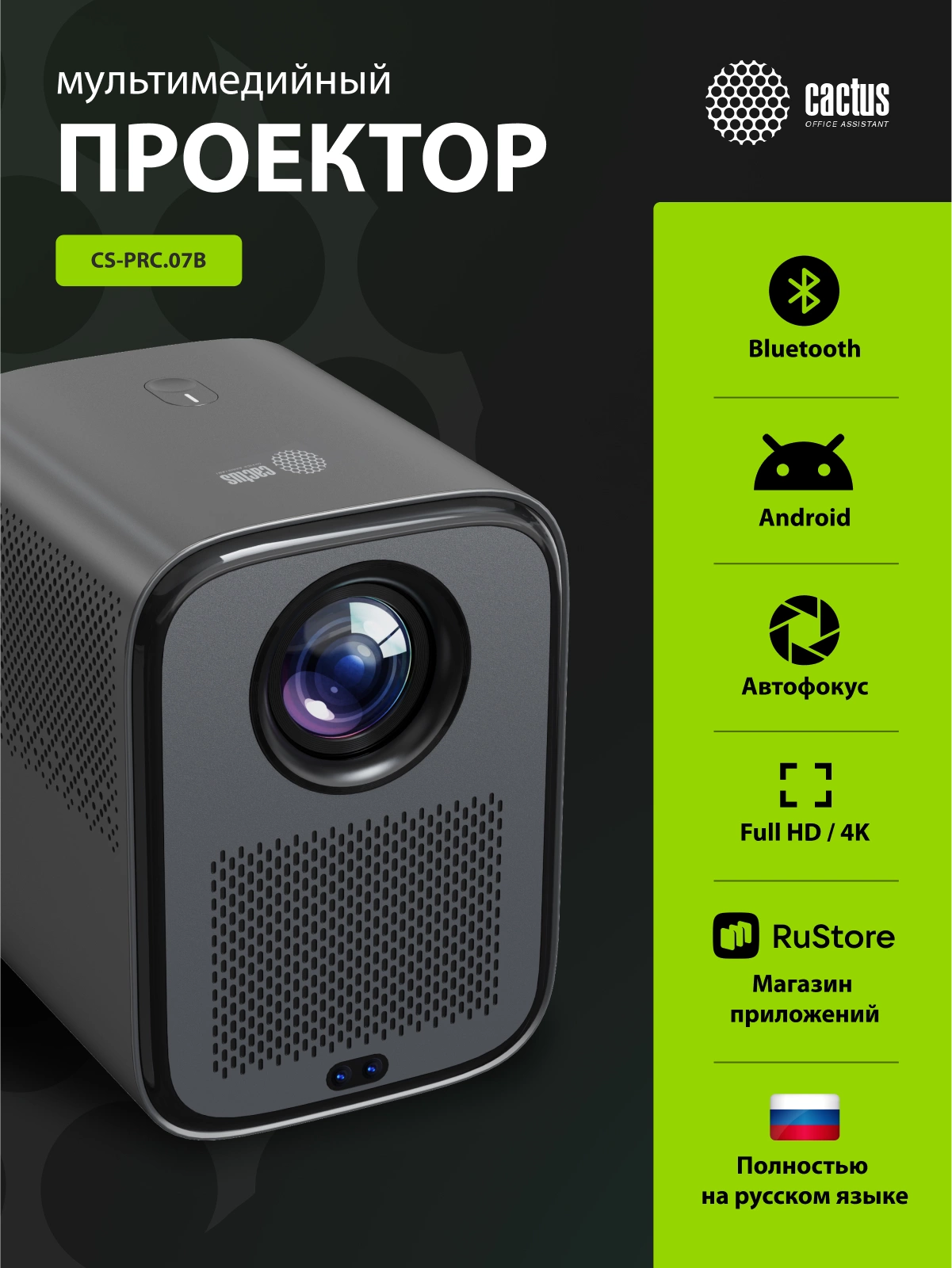 Проектор Cactus CS-PRC.07B.Full HD-A LCD 350Lm ANSI (1920x1080) 2000:1 ресурс лампы:50000часов 1xUSB typeA 1xHDMI 1кг
