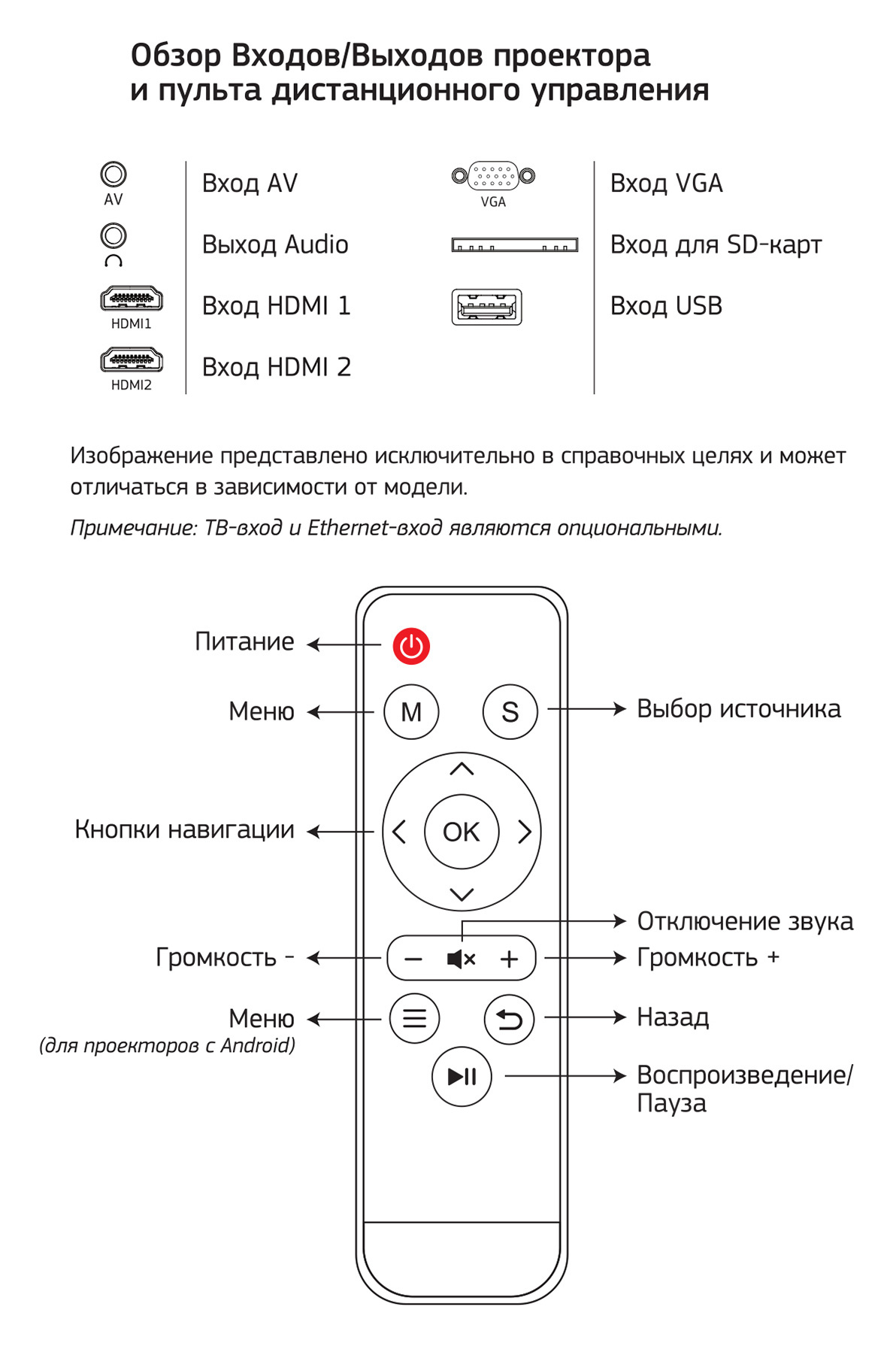 | Комплектация | кабель HDMI 1.5м, 3,5 мм кабель AV, кабель питания, пульт ДУ, салфетка из микрофибры, руководство пользователя |